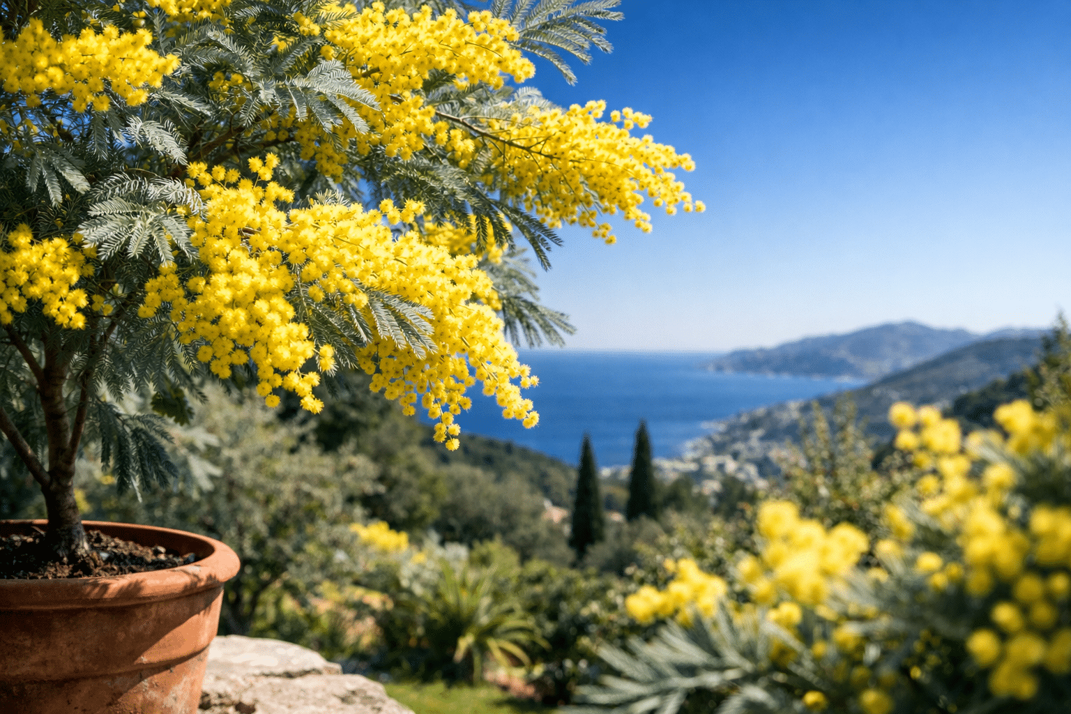 🪴 Mimosa en pot | ❄️ Zones limites, terrasses | 🔧 Contrôle du substrat et du gel | 💧 gestion arrosage, 📦 volume |