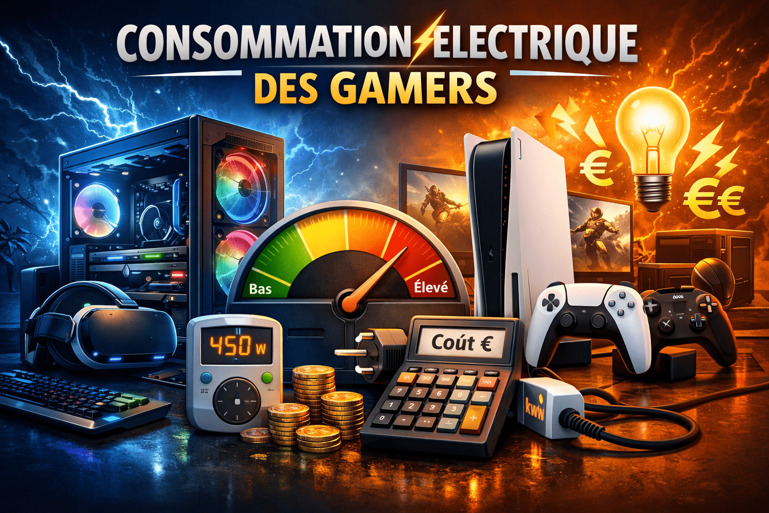 Sur le papier, “jouer” semble simple. En réalité, la consommation dépend d’un écosystème : machine, écran, réseau, audio, accessoires… et surtout du type de jeu.