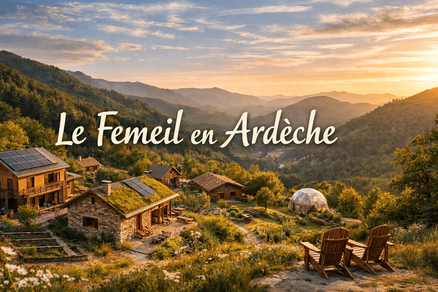 Dans un hébergement écologique, l’emplacement est presque un équipement. Le Femeil, dans son Ardèche de reliefs et de vallées, tire parti d’un territoire qui impose une certaine lenteur. Ce n’est pas un lieu “près de tout”, c’est un lieu “loin du bruit”.