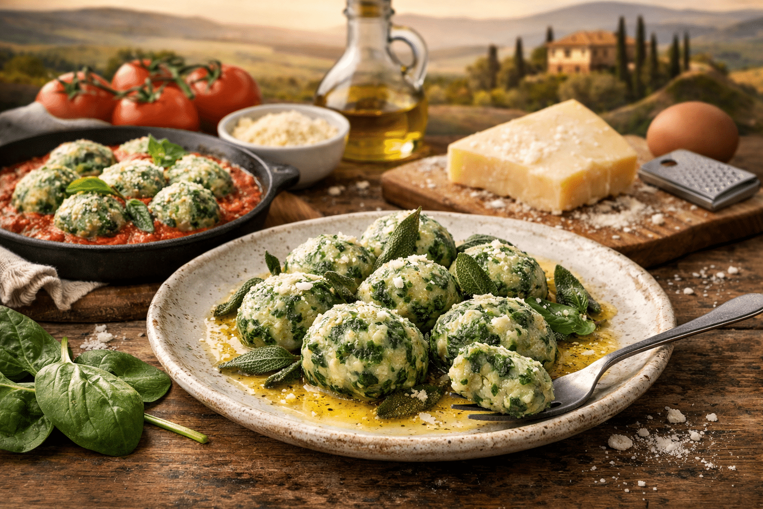 💧 La réussite dépend surtout d’un point : l’humidité des épinards. Trop d’eau = malfatti qui se défont, trop de farine = texture sèche.