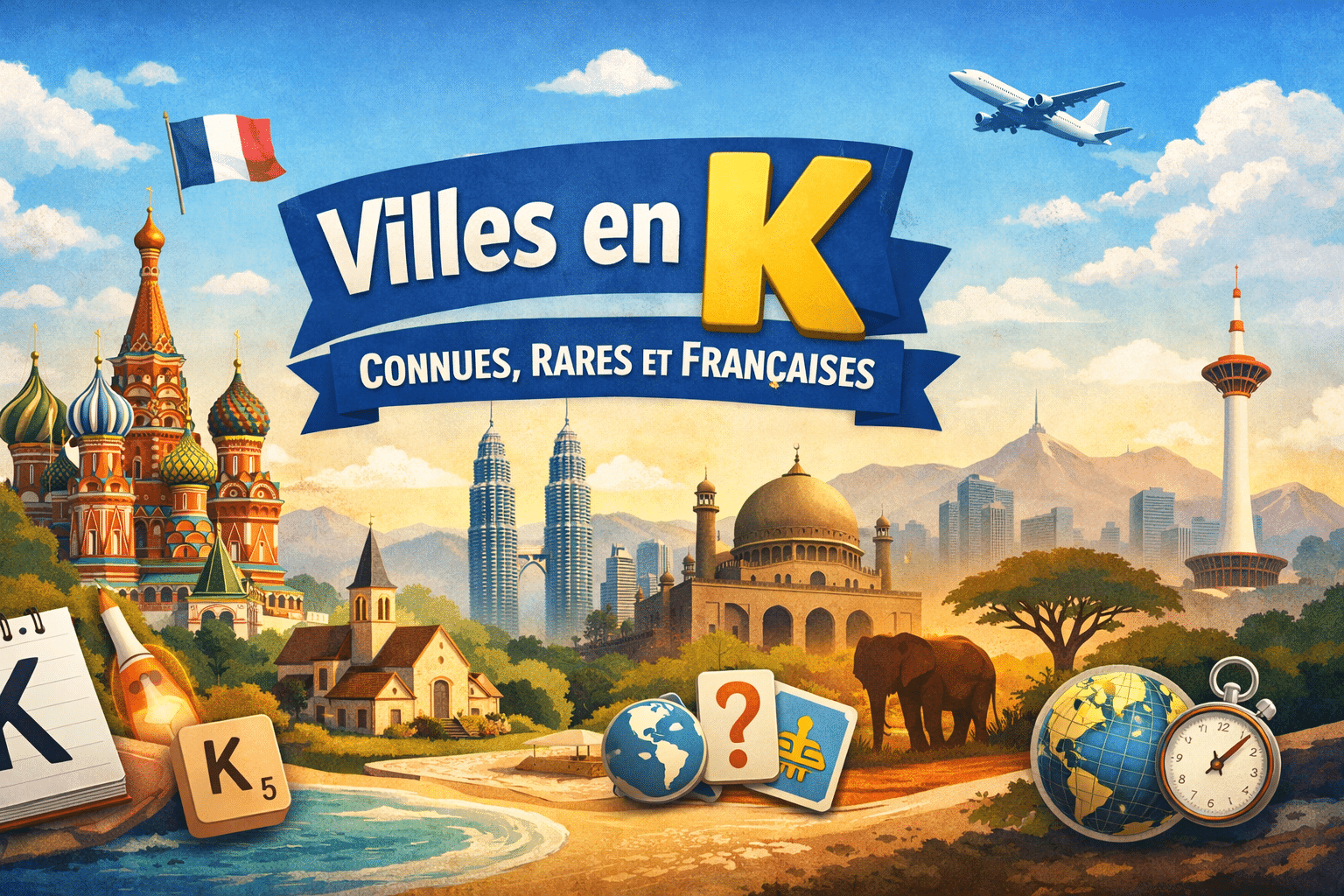 Exemples rapides de villes en K (prêtes à copier) ✍️ : Kyoto, Kinshasa, Kuala Lumpur, Kaboul, Karachi, Kobe, Kourou, Kaysersberg Vignoble.